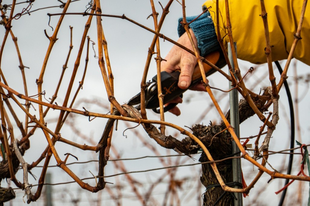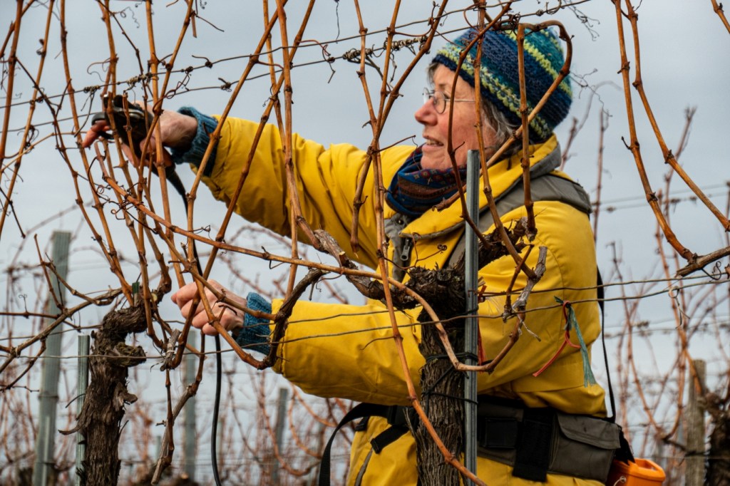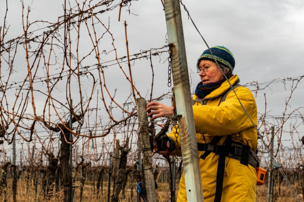 ist die Zeit, die Weinstöcke zu schneiden. Diese Arbeit mache ich auch bei Kälte sehr gerne. Ein bisschen Schnee verzaubert dann noch die Landschaft um mich herum.