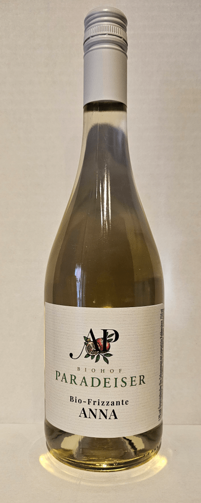 PIWI Sorte: MUSCARIS Jahrgang 2023. Alk.: 11,5%, 4,3 g Restsüße, trocken, zitronengelb, feine Nase nach Muskat und grüner Apfel, prickelnde Säure, harmonischer Abgang, süffig und schlank.
